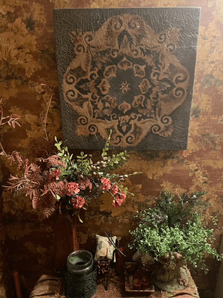 This poem was inspired by my very creative and wonderful mother-in-law, Susan. I always enjoy getting to visit her home, because I feel like I’m at home there. The first picture is a space in her foyer and the second one is of her guest bathroom. Enjoy!
