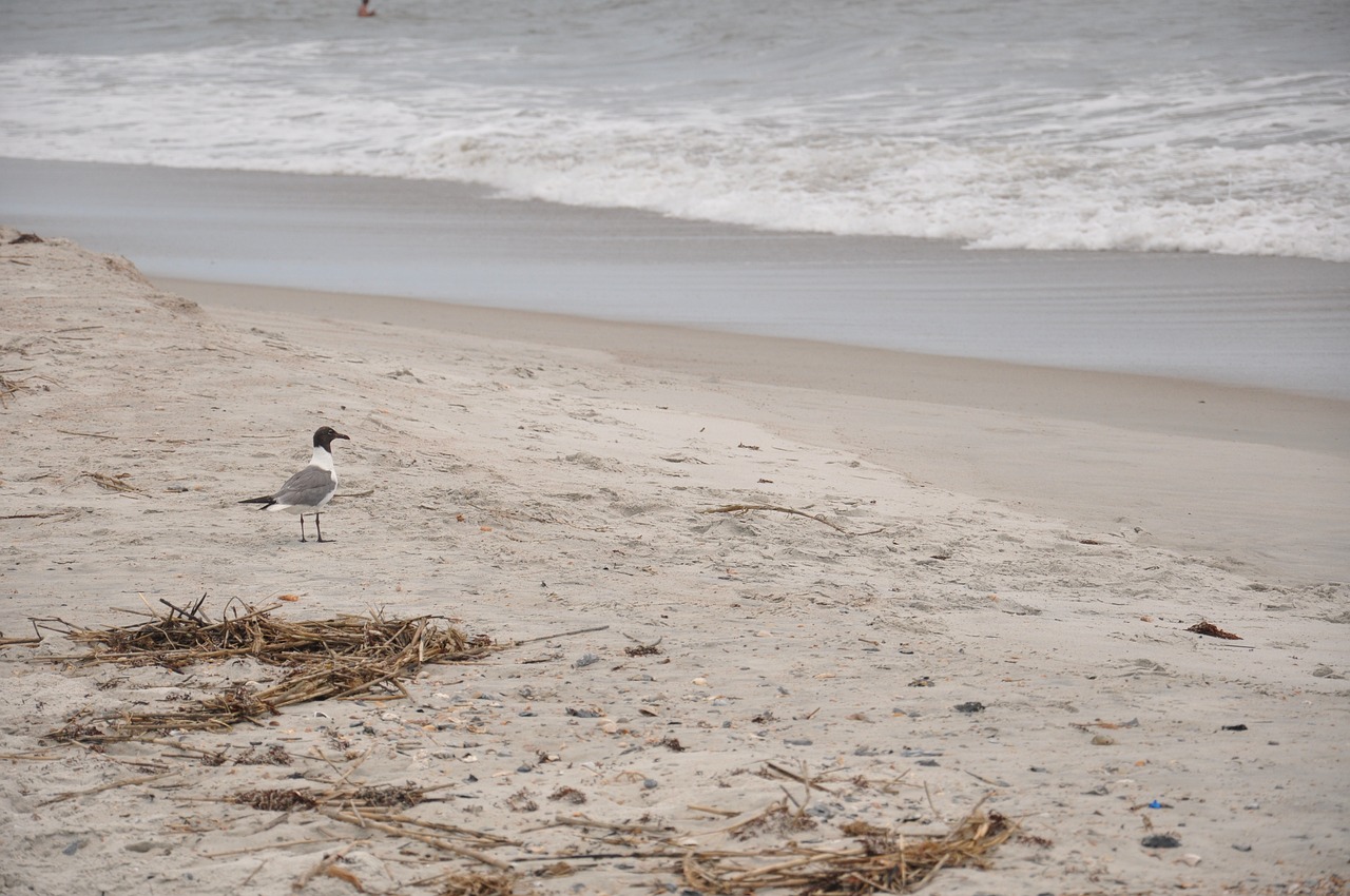 As tumbleweed tumbles free Foam wildly roams from the sea Floats across the wet brushed land And dissipates as it hits jagged sand Dead fish corpses from red tide days ago Disappeared, making this beach look anew Seagull presence grew, replacing the flies One stands next to us, meeting the eyes Of beach folk encircled, sitting on chairs Since the sun is gone and the storm prepares To drive us all away, to the pool or perhaps inside As I wonder how long in this moment we may reside
